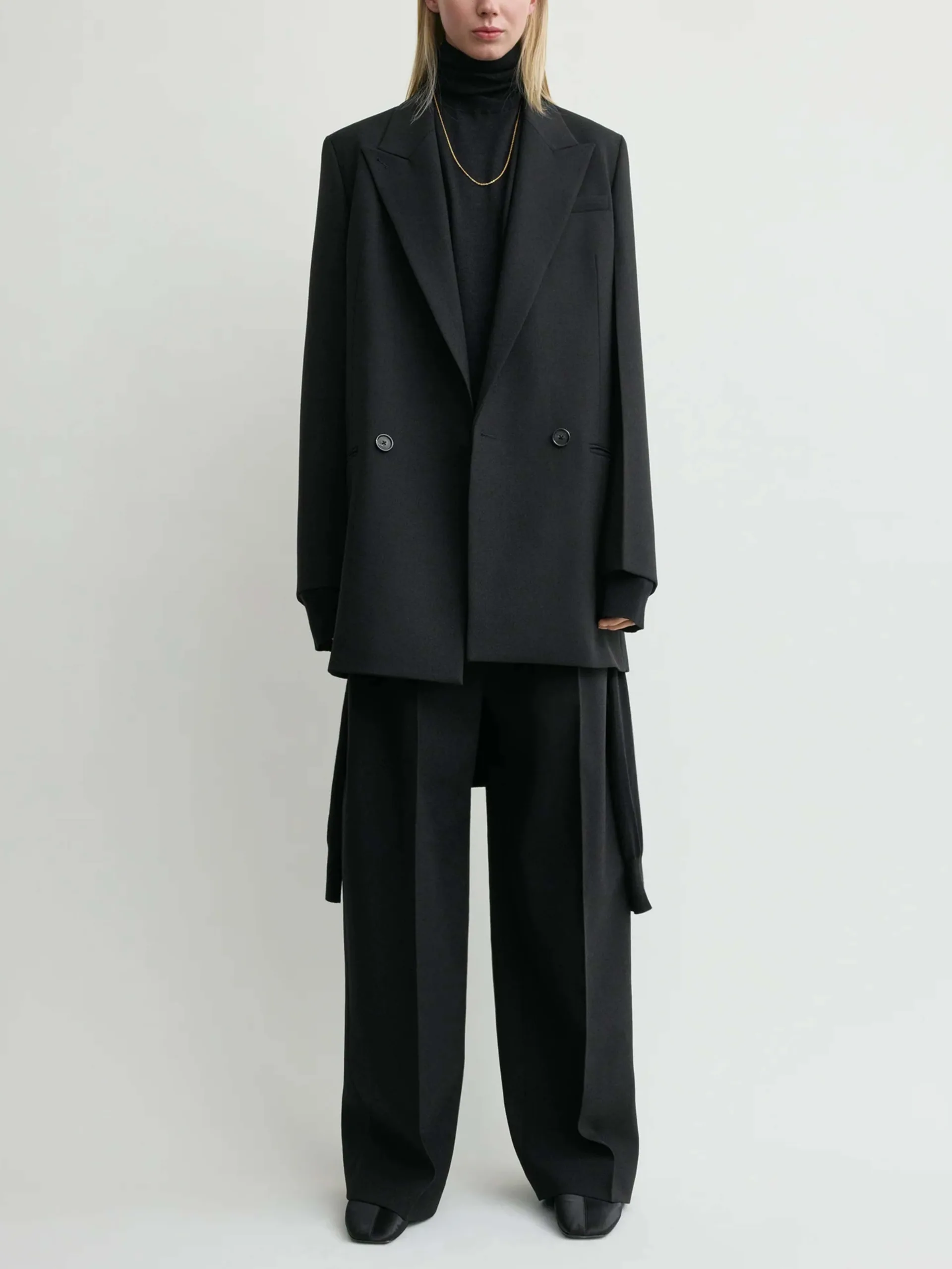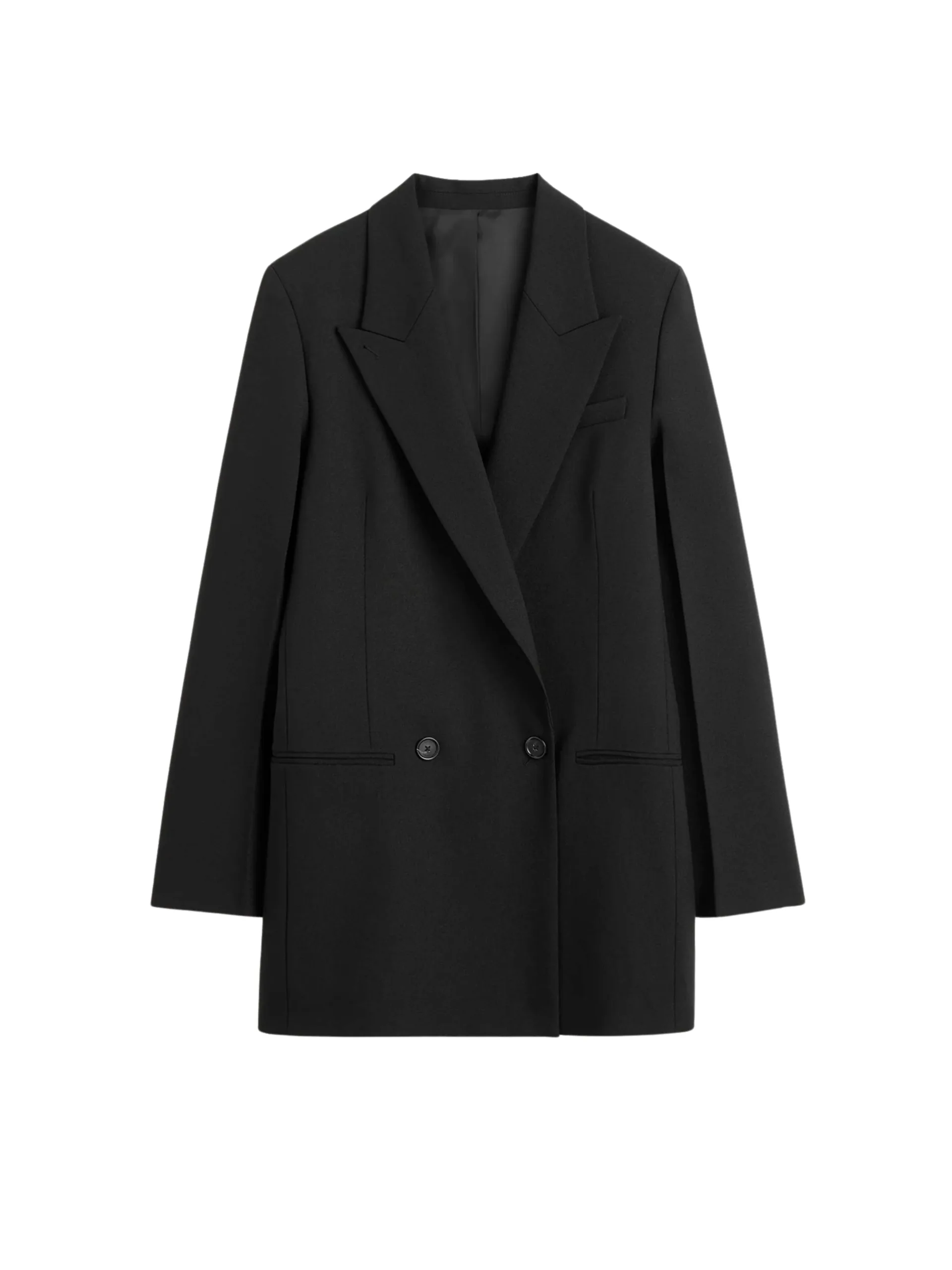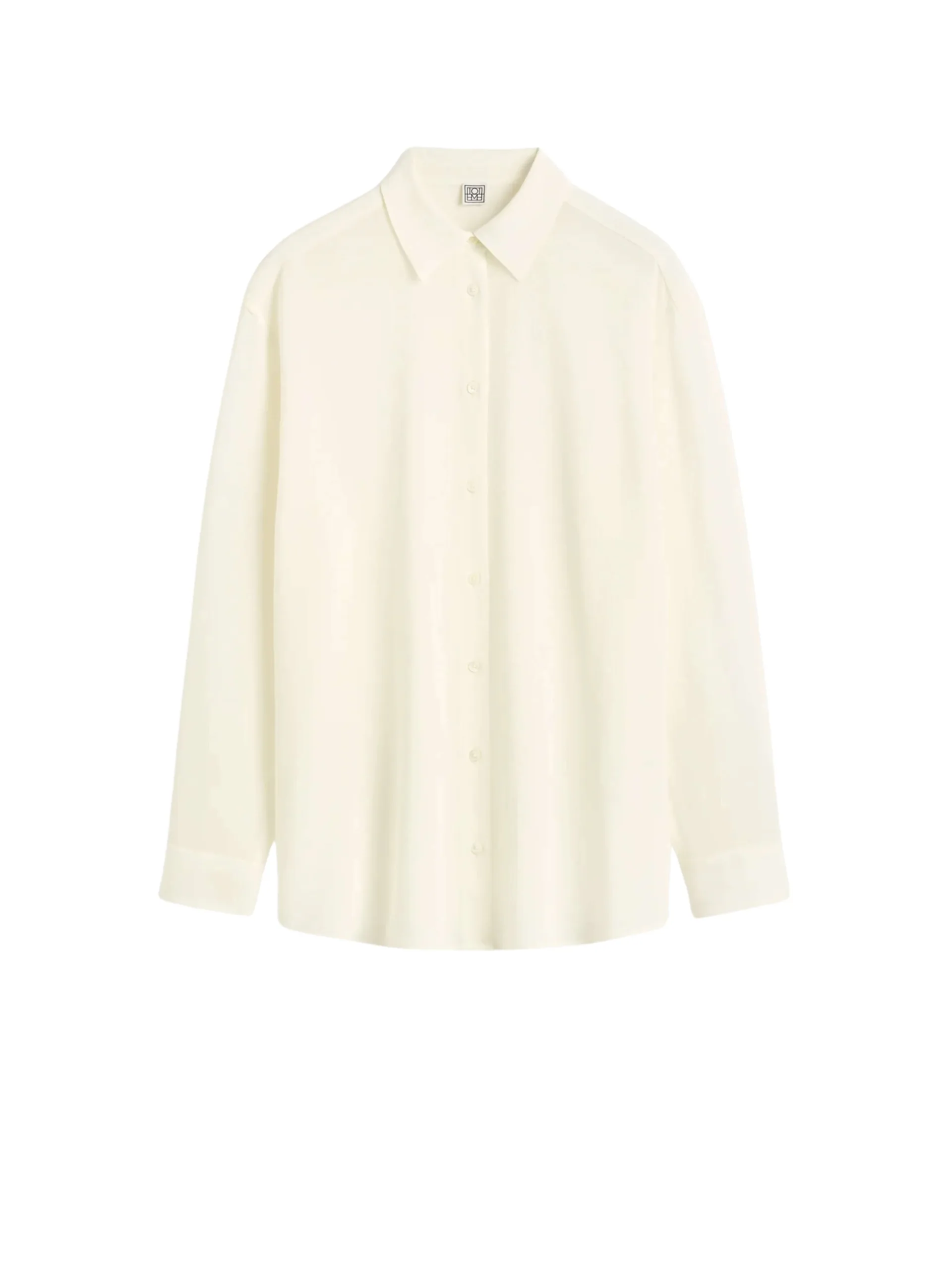 Classic shirt reworked in fluid, semi-sheer crepe to complement sharp office looks. It has a longline, oversized silhouette with dropped shoulders and a buttoned placket and cuffs. Team it with tonal separates.