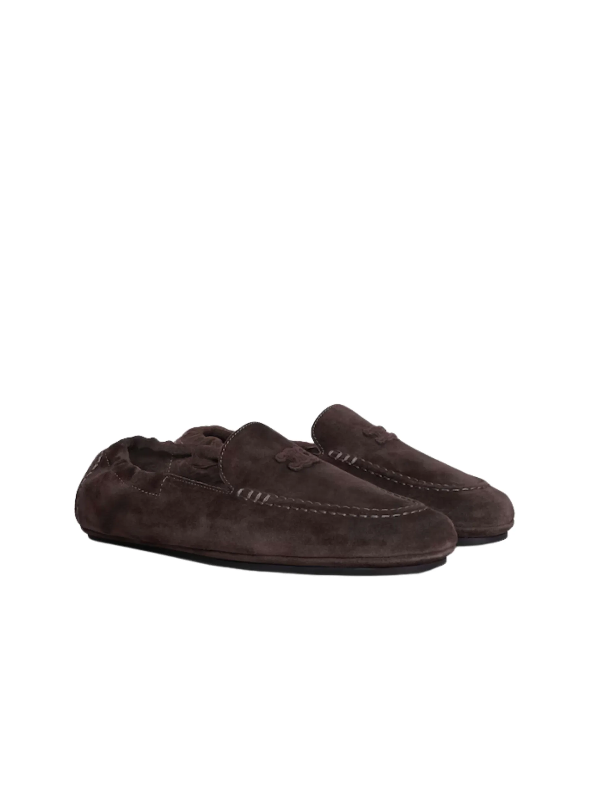 Long wool felt peacoat with notch collar, dropped shoulders, welt pockets, and Celine Paris-engraved horn buttons.