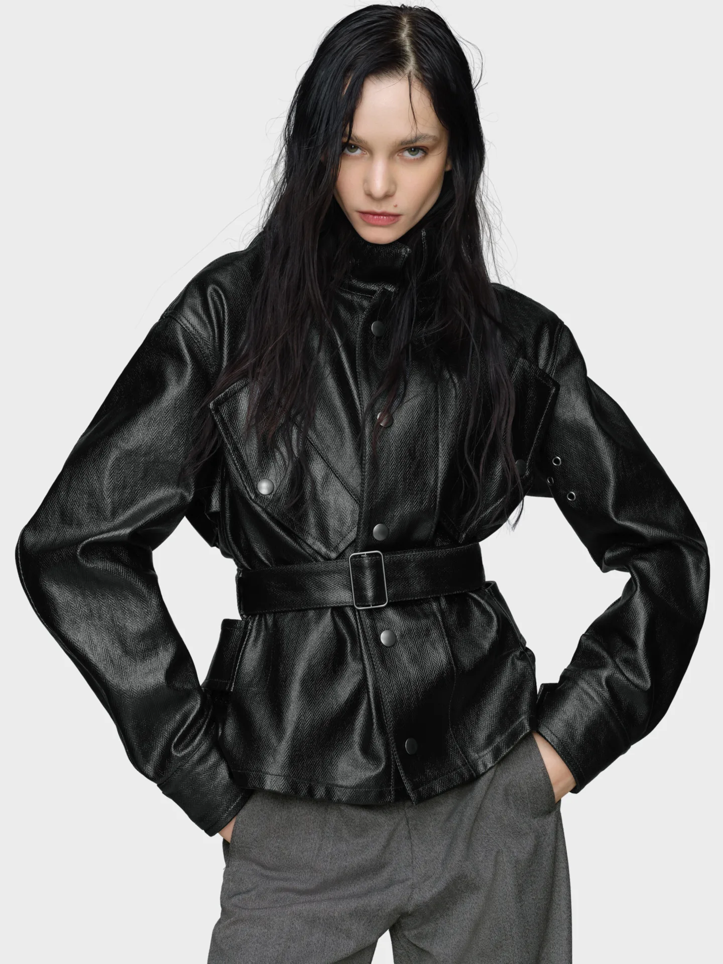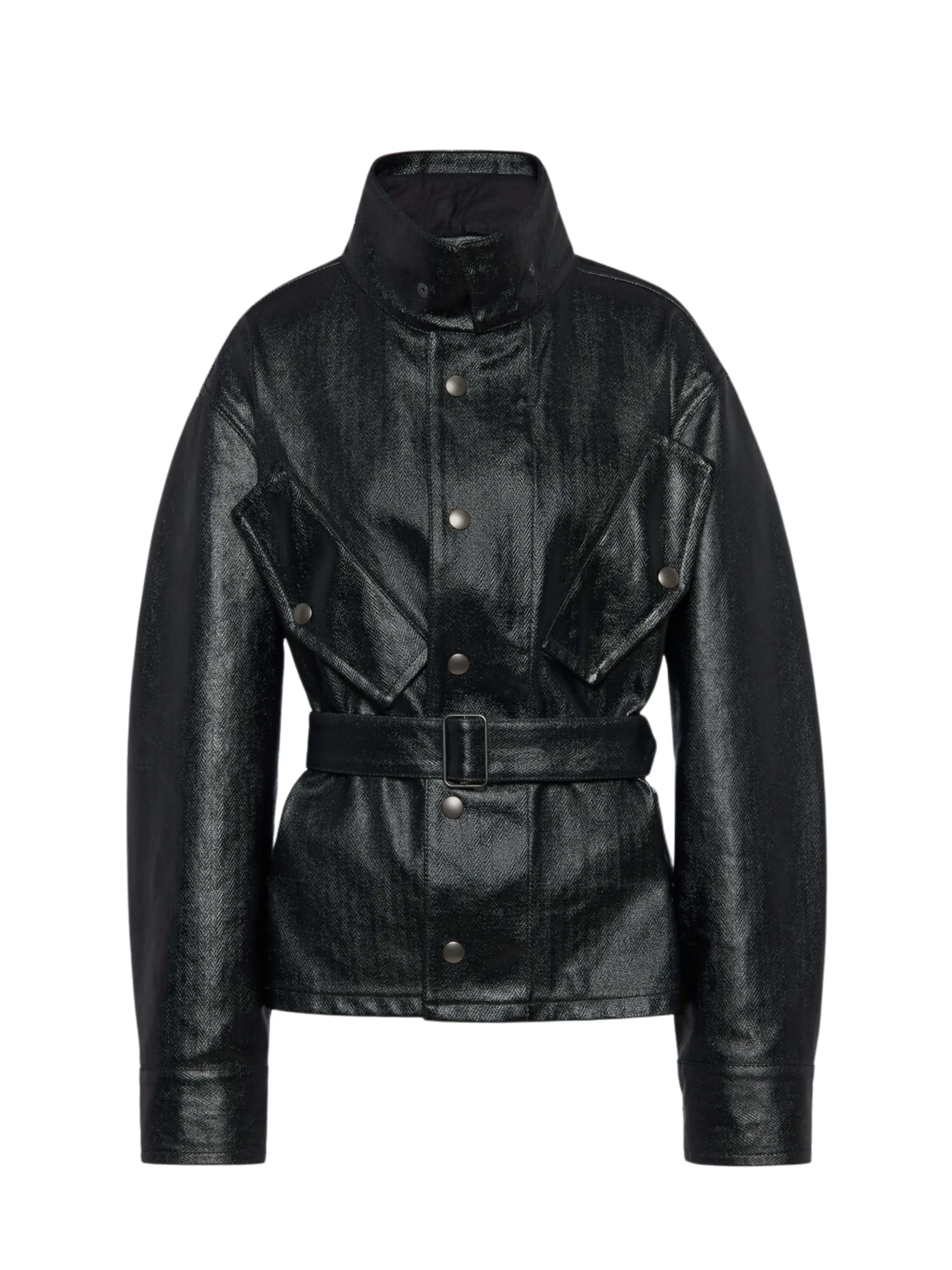 Medium-size bag in soft washed calf leather with a top handle and removable shoulder strap, fold-over flap with zip closure and minimalist signature detailing.